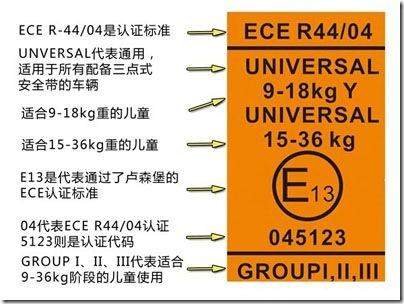 第三点:认证标志符合规定的儿童汽车安全座椅必须标明认证标识。(E1-E53)标识对应当时执行对此商品检查的国家。